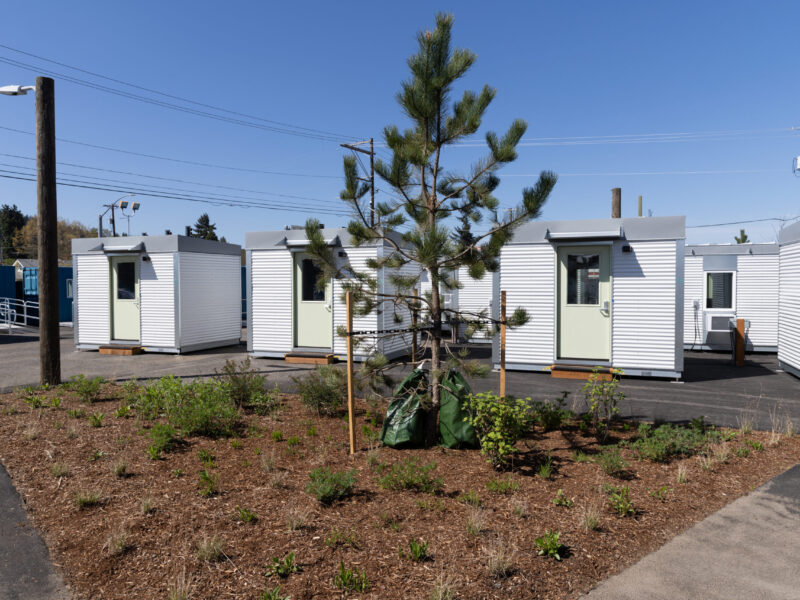 The Harrison Community Village on 1818 S.E. 82nd Ave. is a purpose-built 24/7 shelter. The site includes 38 tiny home village shelters, green space, office space for staff and participant services, hygiene facilities, kitchenette amenities and laundry facilities.